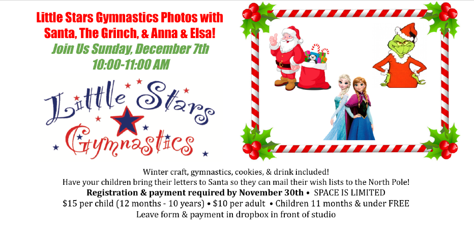 Little Stars Gymnastics is for girls & boys ages 18 months – 10 years old. No prior experience is necessary. Learn important fundamental skills and have fun along the way! Activities such as balance beam, single bar, obstacle course, and basic tumbling will be taught.